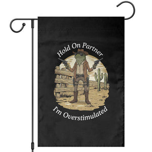 Add a Vibrant Touch to Your Outdoor Space – Hold On Partner I Am Overstimulated Garden Flag Funny Cowboy Frog by Print Your Wear