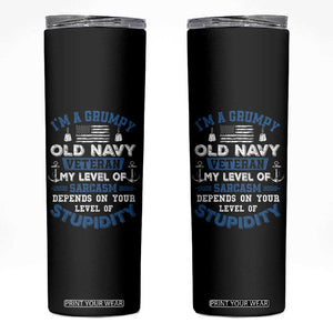 I Am A Grumpy Old Navy Veteran My Level Of Sarcasm Depends On Your Level Of Stupidity Skinny Tumbler