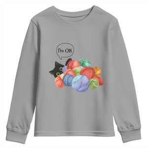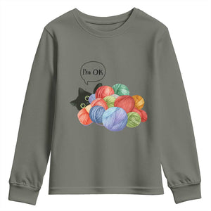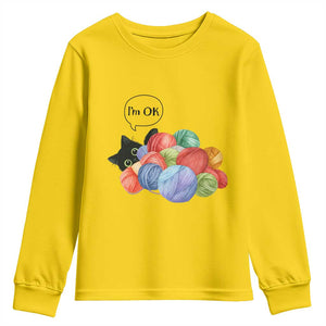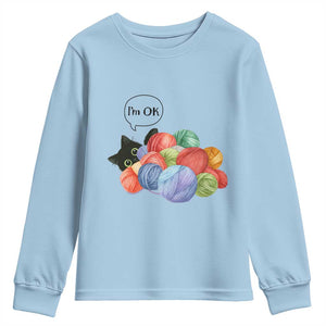 I’m OK Youth Sweatshirt Cat Tangled In Yarn Funny Crochet Gift