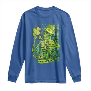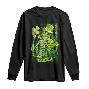 Irish Skeleton Long Sleeve Shirt Stuck Between IDK IDC And IDGAF St Patrick's Day Green Flag Skull