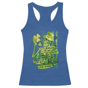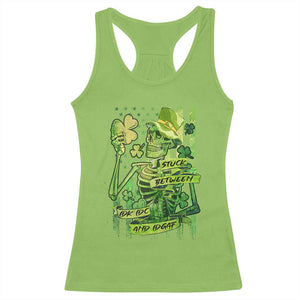 Irish Skeleton Racerback Tank Top Stuck Between IDK IDC And IDGAF St Patrick's Day Green Flag Skull