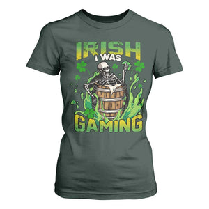 Irish Skeleton T Shirt For Women Irish I Was Gaming Funny St Patrick's Day Gamer Gaming Skull TS02