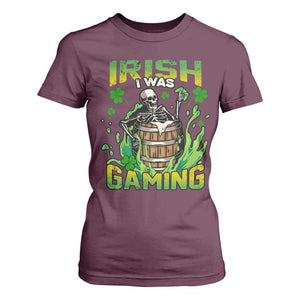 Irish Skeleton T Shirt For Women Irish I Was Gaming Funny St Patrick's Day Gamer Gaming Skull