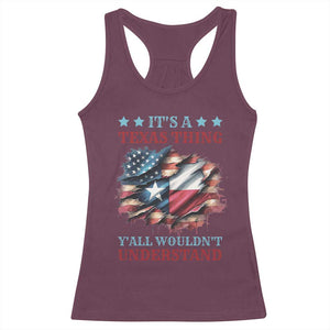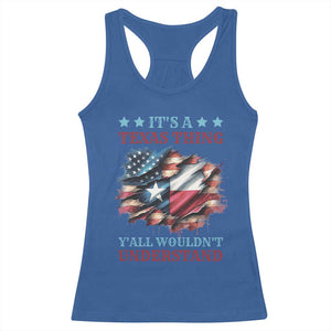 Celebrate the Lone Star State with this fun and expressive tank top, perfect for Texas natives and fans alike! The “It’s A Texas Thing Y’all Wouldn’t Understand” Racerback Tank Top combines patriotic flair with everyday comfort, making it your go-to choice for warm weather, workouts, festivals, or casual wear.