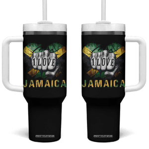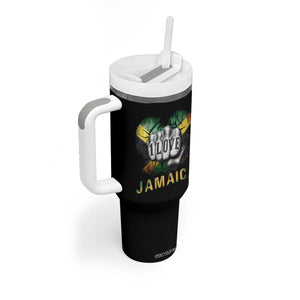 Placeholder Jamaica One Love Tumbler With Handle Rasta Reggae Punching Hand Jamaican Flag - PrintYourWear - Print Your Wear