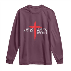 Jesus He Is Risen Long Sleeve Shirt Christian Cross Bible Verse Easter Day