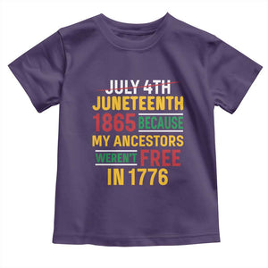 Juneteenth 1865 Toddler T Shirt Not July 4th Because My Ancestors Weren't Free in 1776