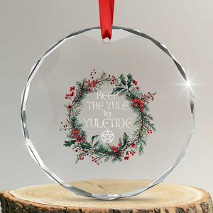Keep The Yule In Yuletide Crystal Glass Ornament Yule Christmas Wreath Pentagram