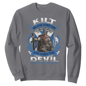 Placeholder Kilt Because When God Looks Down He Knows To Be Proud And When The Devil Looks Up He Knows To Be Afraid Sweatshirt - PrintYourWear - Print Your Wear