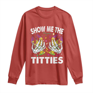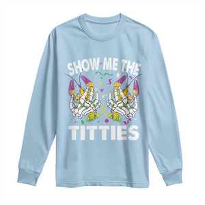 Mardi Gras Long Sleeve Shirt Show Me The Titties Funny Skeleton Crawfish
