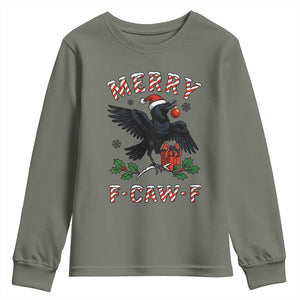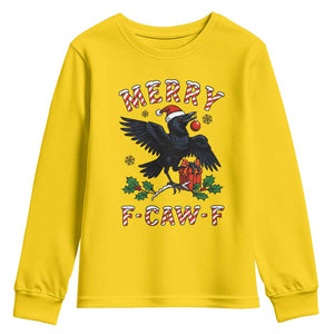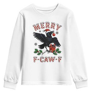 Merry F Caw F Raven Lover Youth Sweatshirt Funny Holidays Gift