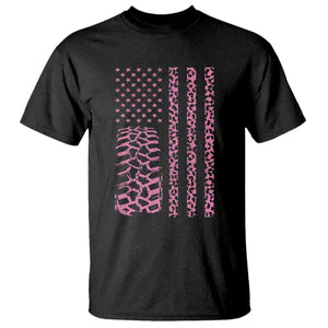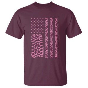 Off Road Car Wheel Pink Leopard Print American Flag T Shirt