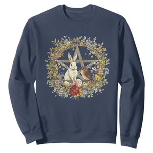 Ostara Blessing Pagan Eostre Easter Day Sweatshirt Rabbit Bird Wiccan Pentagram