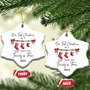 Placeholder Personalized First Xmas As A Family Of Three Christmas Ornament Custom Name Family With Baby - PrintYourWear - Print Your Wear