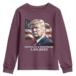 President Trump Inauguration Day 2025 Youth Sweatshirt Ending Of A Nightmare January 20th American Flag TS02