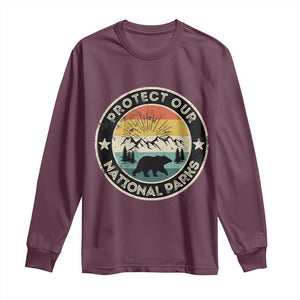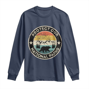 Protect Our National Parks Long Sleeve Shirt Bear Wildlife Retro Mountain Graphic