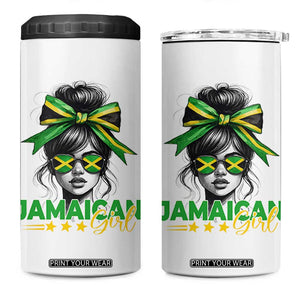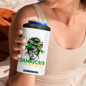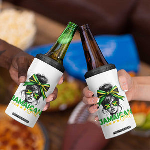 Proud Jamaican Girl 4 in 1 Can Cooler Tumbler Jamaica Messy Bun Retro Vintage Jamaican Flag