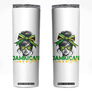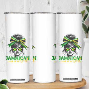 Proud Jamaican Girl Skinny Tumbler Jamaica Messy Bun Retro Vintage Jamaican Flag