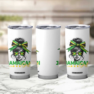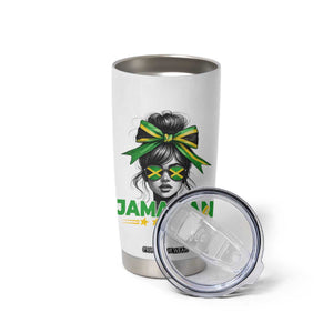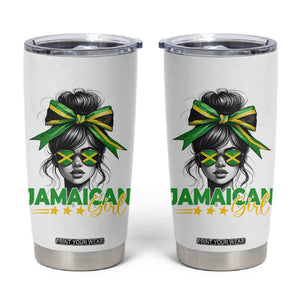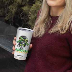 Placeholder Proud Jamaican Girl Tumbler Cup Jamaica Messy Bun Retro Vintage Jamaican Flag - PrintYourWear - Print Your Wear