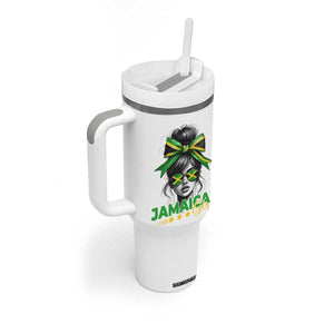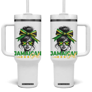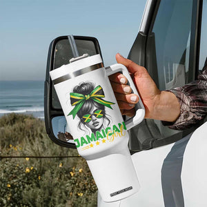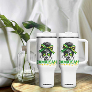 Proud Jamaican Girl Tumbler With Handle Jamaica Messy Bun Retro Vintage Jamaican Flag