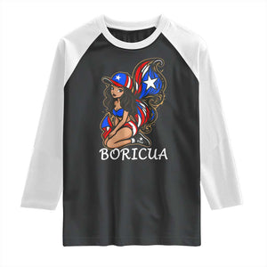 Puerto Rico Pin Up Girl Raglan Shirt Taino Boricua Puerto Rican Flag