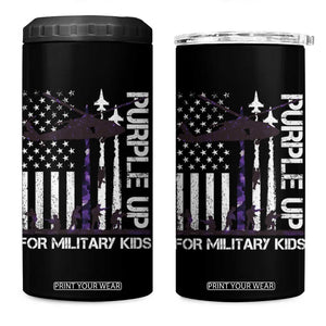 Purple Up For Military Kids 4 in 1 Can Cooler Tumbler Camo American Flag Military Child Month USA Camouflage