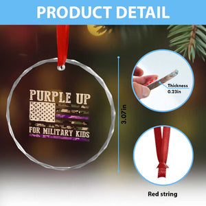 Purple Up For Military Kids Crystal Glass Ornament Military Child Month USA Flag Camouflage