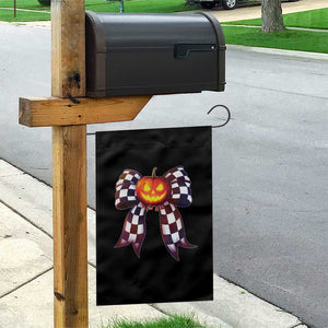 Add a Vibrant Touch to Your Outdoor Space – Race Car Halloween Garden Flag Pumpkin Checkered Coquette Bow by Print Your Wear