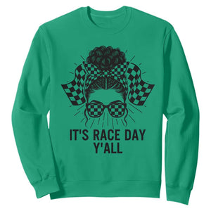 Racing Car Checkered Flag Sweatshirt Messy Bun Woman Race Day TS14