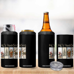 Santa Funny Christmas Hunter Look 4 in 1 Can Cooler Tumbler He Is Hunting
