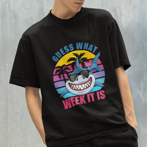 Placeholder Funny Shark Lover T Shirt Guess What Week It Is Retro Summer Beach - PrintYourWear - Print Your Wear