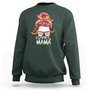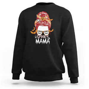 Spooky Mama Halloween Ghost Witchy Spooky Mom Messy Bun Sweatshirt