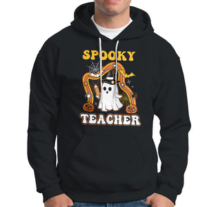 Spooky Teacher Retro Rainbow Ghost Funny Halloween Teacher Hoodie