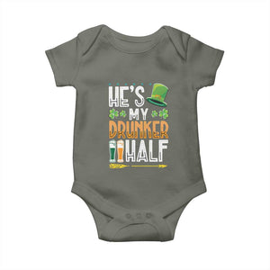 St Patrick's Day Couple Matching Baby Onesie He's My Drunker Half