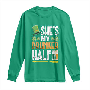 St Patrick's Day Couple Matching Long Sleeve Shirt She's My Drunker Half