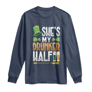 Placeholder St Patrick's Day Couple Matching Long Sleeve Shirt She's My Drunker Half - PrintYourWear - Print Your Wear