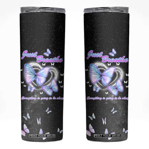 Suicide Prevention Awareness Skinny Tumbler Teal Purple Butterfly Just Breathe Everything Is Going To Be Okay TB10