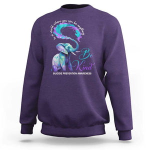 Suicide Prevention Awareness Sweatshirt In A World Where You Can Be Anything Be Kind Elephant