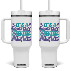 Suicide Prevention Awareness Tumbler With Handle Teal Purple Ribbon Inspirational Motivational Gifts Little Reminders Therapist Psychologist TB10