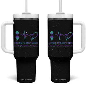 Placeholder Suicide Prevention Awareness Tumbler With Handle Teal Purple Ribbon Semicolon Choose To Keep Going - PrintYourWear - Print Your Wear