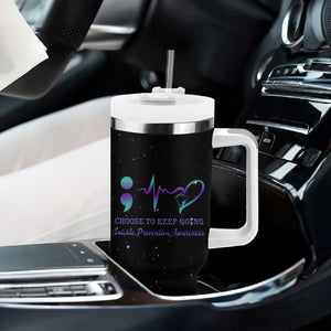 Suicide Prevention Awareness Tumbler With Handle Teal Purple Ribbon Semicolon Choose To Keep Going