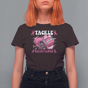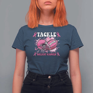 Tackle Football Breast Cancer Awareness T Shirt For Women Pink Ribbon Boys Kid TS10