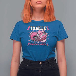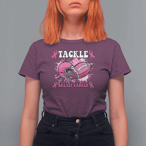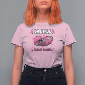 Tackle Football Breast Cancer Awareness T Shirt For Women Pink Ribbon Boys Kid