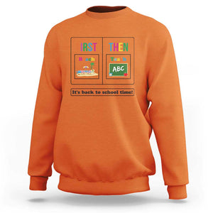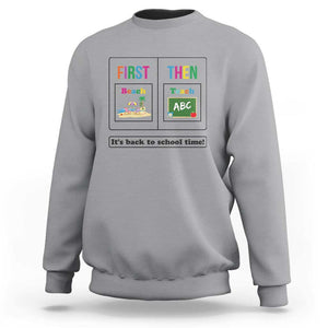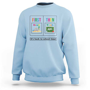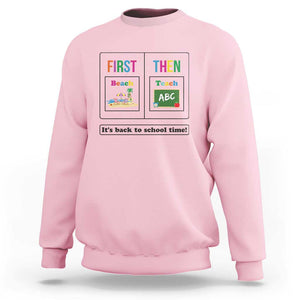 Placeholder Teacher Sweatshirt First Beach Then Teach It's Back To School Time - PrintYourWear - Print Your Wear