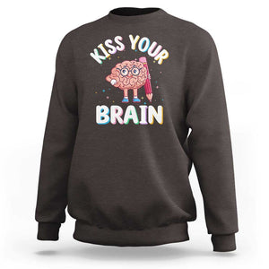 Placeholder Teacher Sweatshirt Kiss Your Brain Back To School - PrintYourWear - Print Your Wear