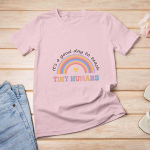 Placeholder Teacher T Shirt For Women It's A Good Day To Teach Tiny Humans Rainbow - PrintYourWear - Print Your Wear