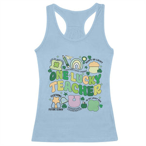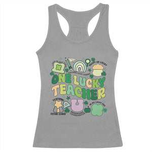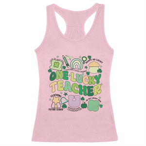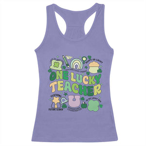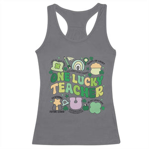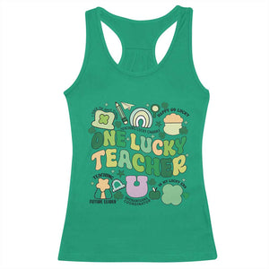 Placeholder Teachers St Patrick's Day Racerback Tank Top One Lucky Teacher Retro Groovy - PrintYourWear - Print Your Wear