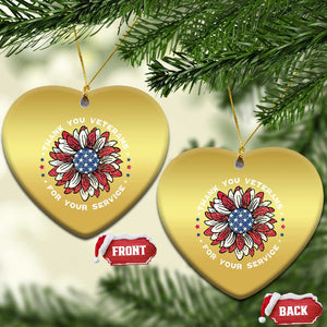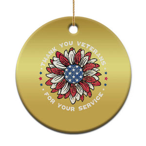 Thank You Veterans Christmas Ornament American Flag Sunflower Military Tribute