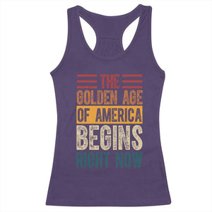 The Golden Age Of America Begins Right Now Trump 2025 Racerback Tank Top TS09