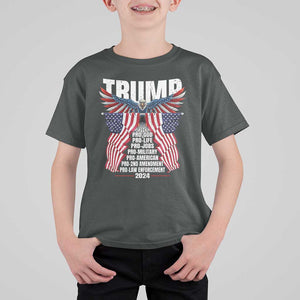 Trump Supporter T Shirt For Kid Pro God Pro Life Pro Jobs Pro Military Pro American 2024 Eagle American Flag
